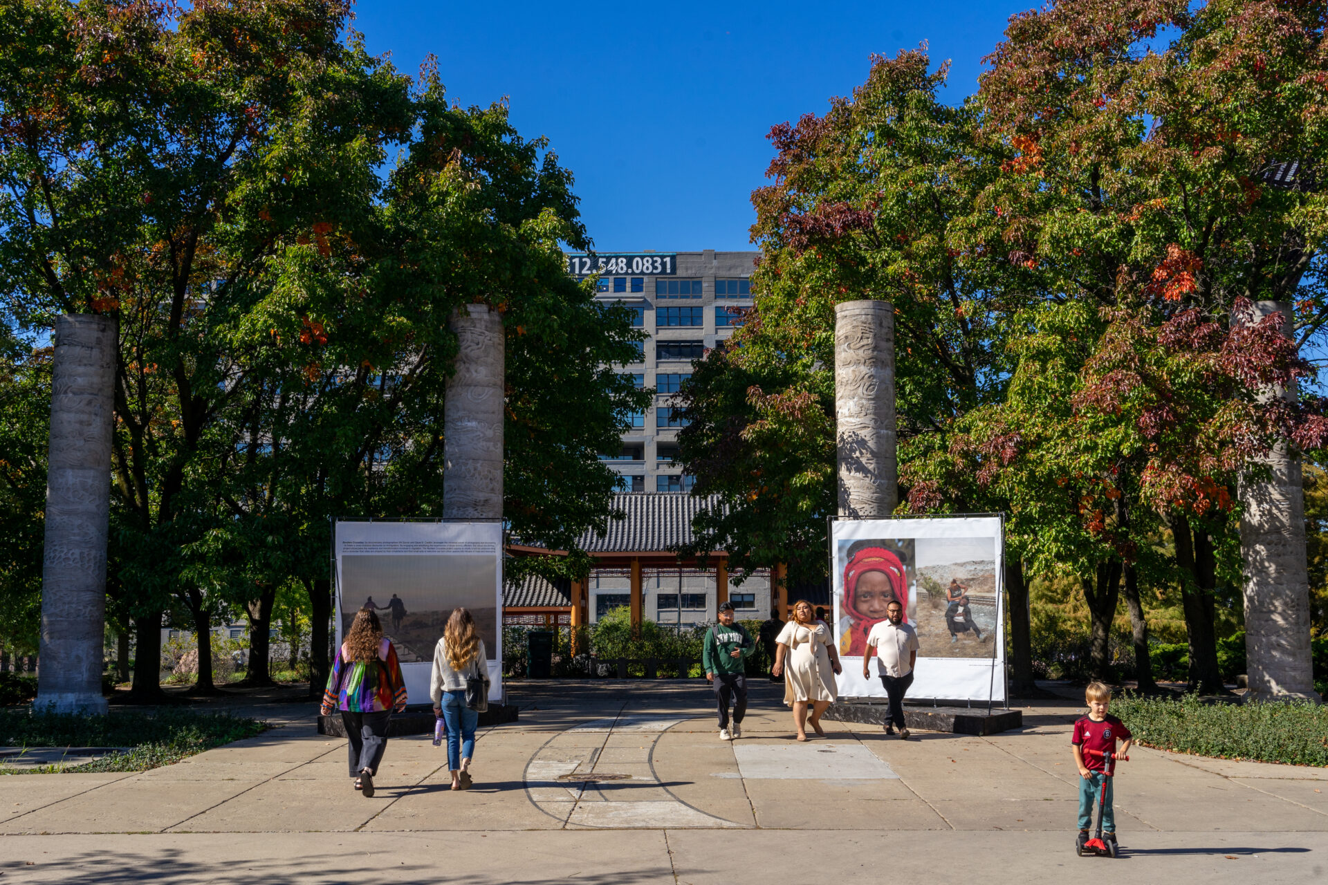 For greatest impact to spread these stories and promote empathy and inclusive dialogue on immigration, three factors impacted the design – place, scale, stability. Critical to the narrative was to find places to exhibit these journeys that would both resonate with the neighborhood and have prominent presence to the public. Working alongside the Chicago Park District, three sites were found within public parks, each anchored in immigrant communities that have built resilient cultural hubs of warmth and sanctuary. To further its reception, the documentary photographs were located close to park access points with visibility to pedestrians beyond the park boundaries.